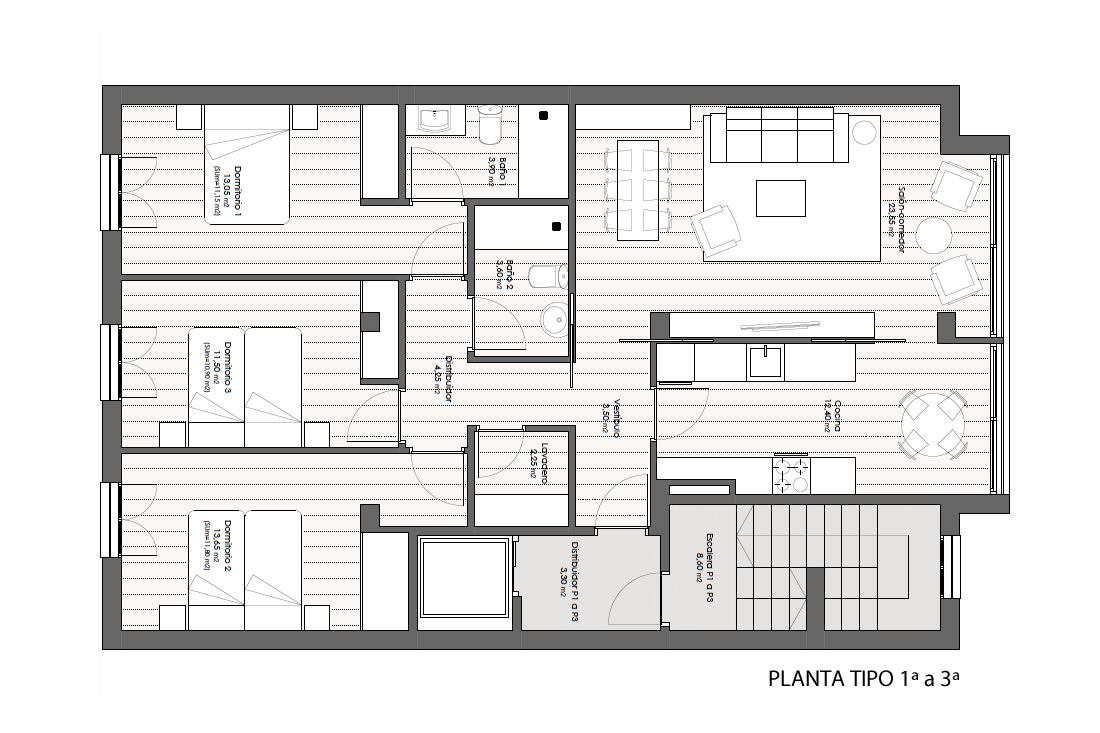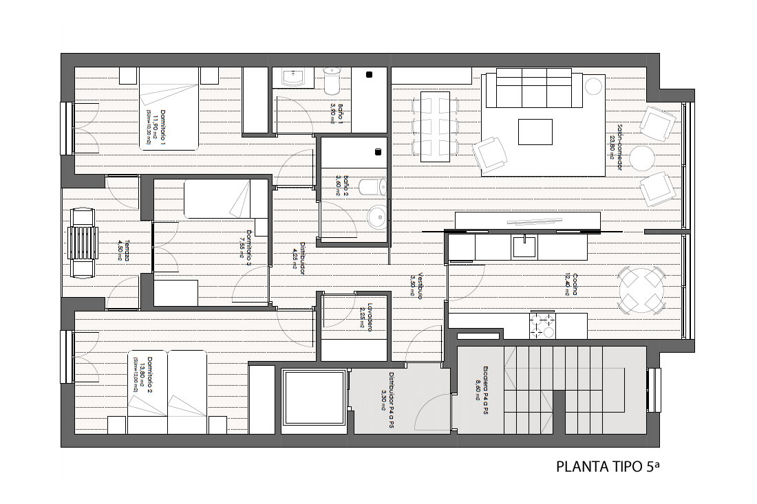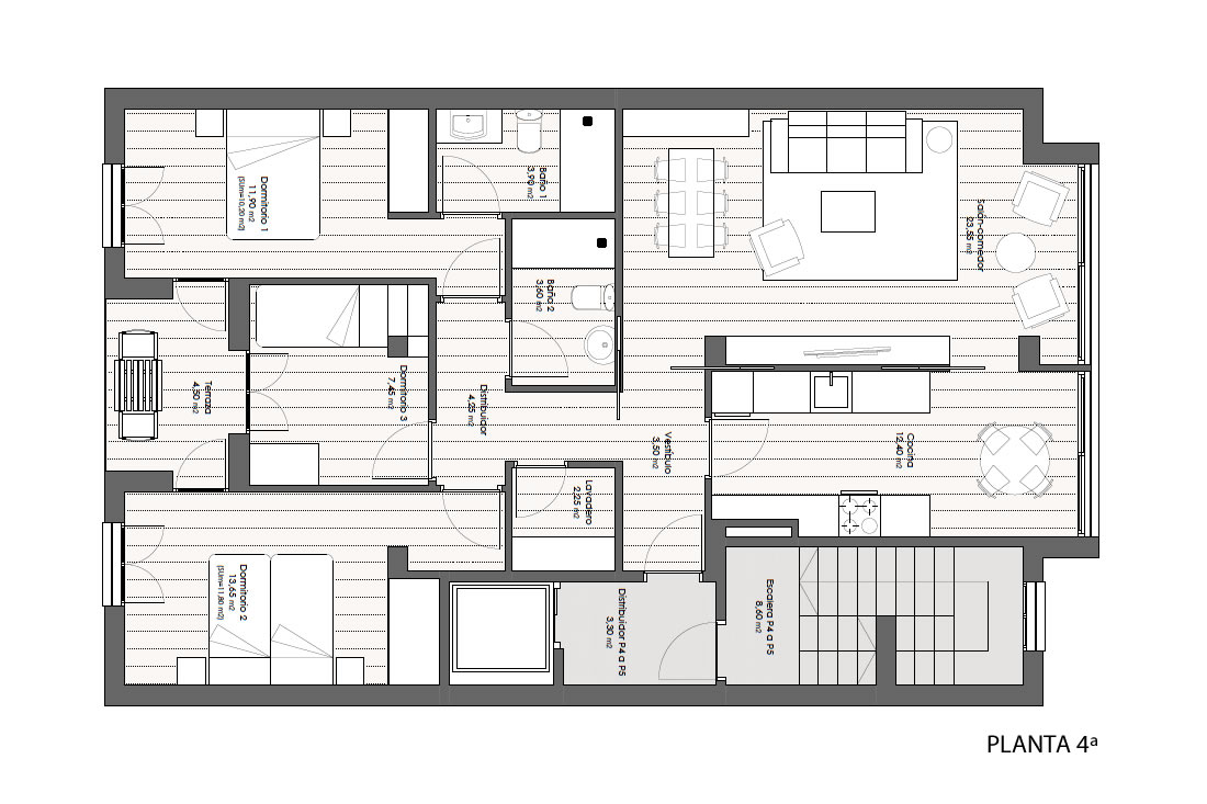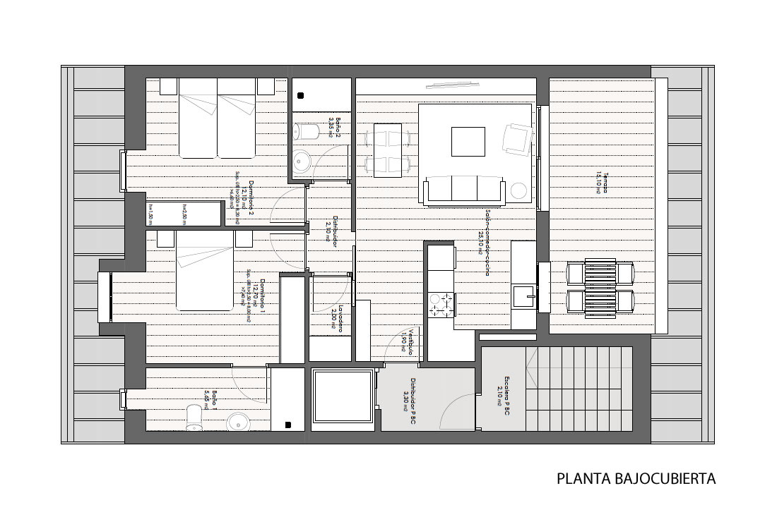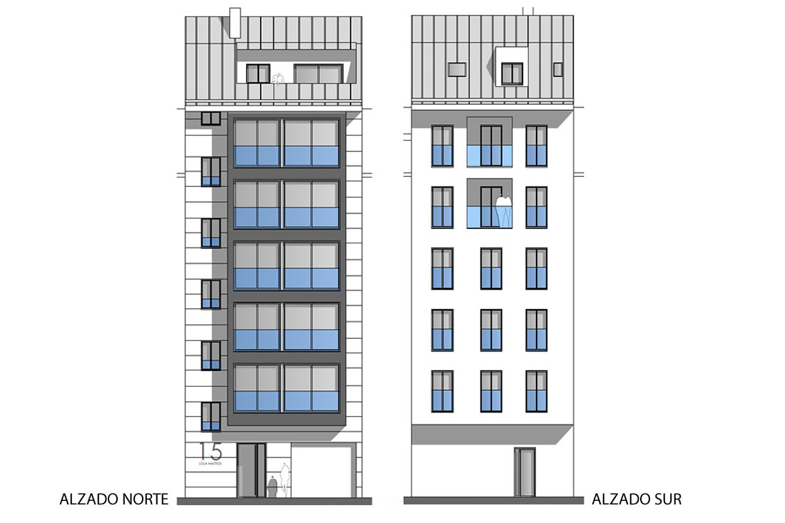 Sobre un edificio existente construiremos una estructura de hormigón armado sobre una cimentación tipo losa, todo ello completamente nuevo. Haremos una vivienda por planta totalmente aisladas acústica y térmicamente. La fachada posterior esta orientada al sur por lo que la casa tendrá mucha luz. La fachada principal dispone de unas hermosas vistas al monte Naranco.